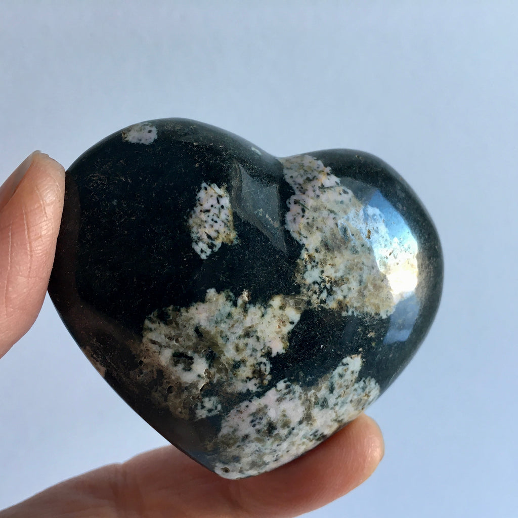 Pink Thulite in Black Jade Heart from Pakistan